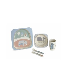 Disfruta de las primeras comidas con tu bebé y observa como poco a poco va descubriendo nuevos alimentos y texturas y siendo más autónomo a la hora de comer gracias a nuestra vajilla elaborada en melamina. · Incluye: 1 bol, 1 plato llano, 1 cuchara, 1 tenedor y 1 vaso. · Todos los componentes están realizados con materiales de alta calidad y libres de BPA. · Vajilla apta para microondas y lavavajillas.