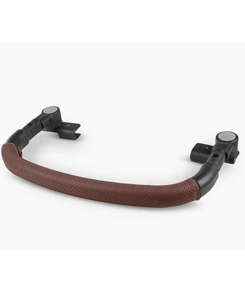 Barra de protección para UPPAbaby Minu V3. Gira para facilitar el acceso, se pliega con el cochecito y está hecha en cuero lavable REACH. Seguridad, confort y diseño en un solo accesorio.