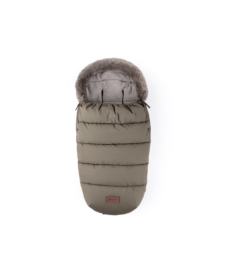 Las cremalleras se juntan en la parte inferior, al abrirlas se crea una práctica abertura para los pies del bebé. En la parte trasera hay un bolsillo plegado que evita que el saco se deslice.
