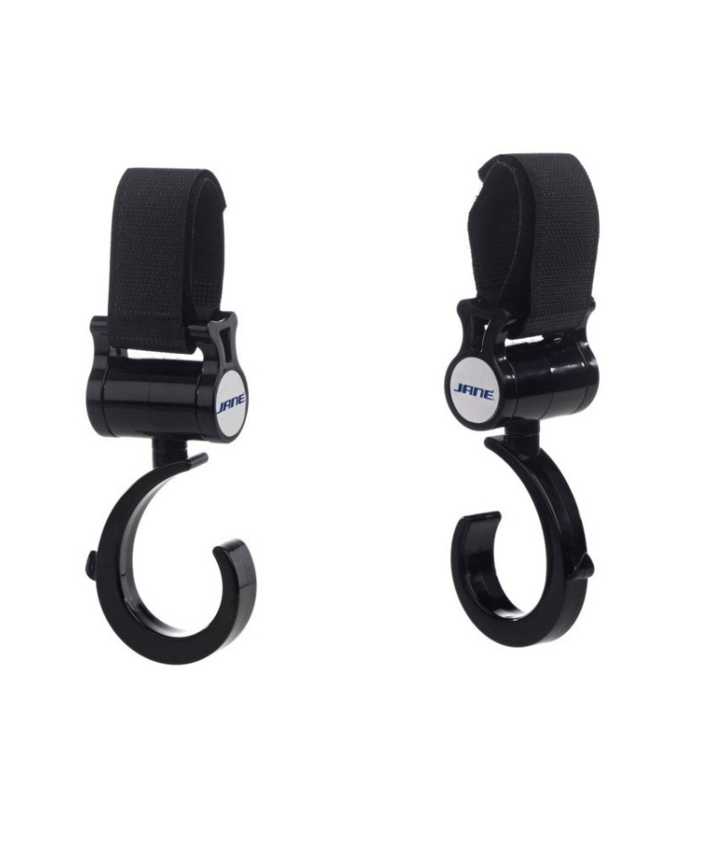 Pack de 2 ganchos colgadores multiusos de color negro. Átalos al chasis de tu carrito y cuelga lo que necesites.