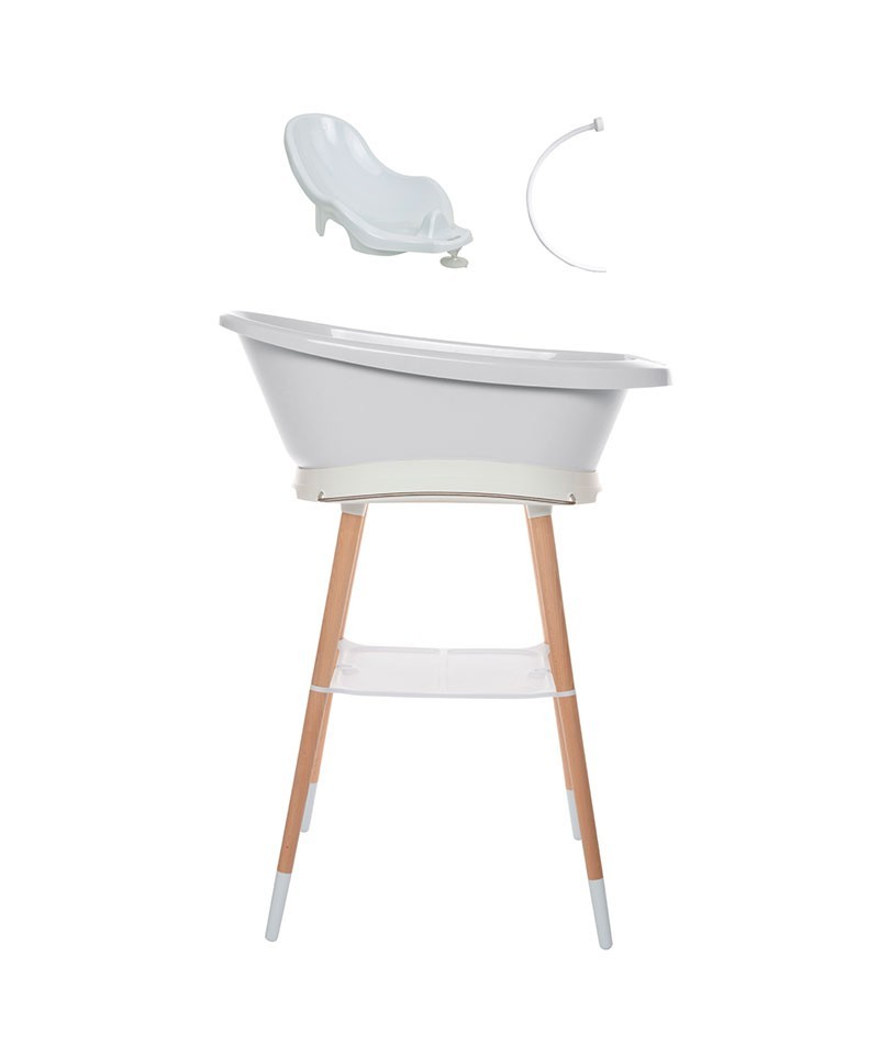 Incluye soporte de madera de haya, bañera con pantalla LED , tubo de desagüe y hamaquita
