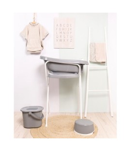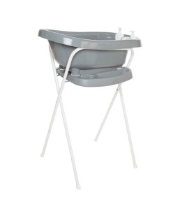 Set de bañera térmica modelo thermobath Fabulous de Bebejou, con asiento de recién nacido y soporte incluido de 98 cm. Thermobath viene provista de un termómetro que le indicará la temperatura del agua, dos dispensadores de jabón y un tubo de desagüe.