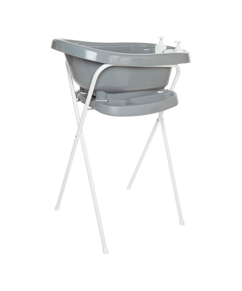Incluye: bañera, soporte plegable con bandeja, 2 dispensadores de jabón, asiento de recién nacido termómetro  y tubo de desagüe.