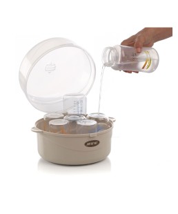 Con capacidad para 6 biberones y sus componentes y tetinas, los estirilizarás sin ningún producto químico.