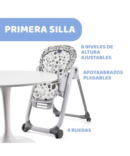 La trona cuenta con 8 posiciones de altura para ajustarse a cualquier mesa