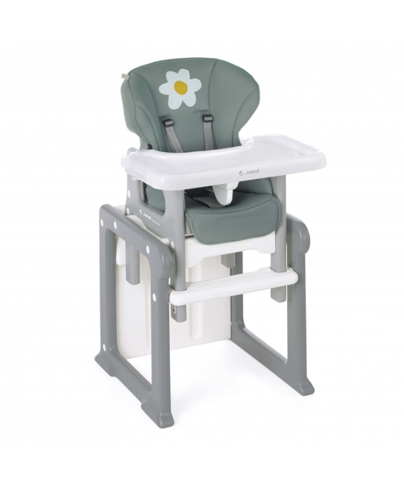 La trona Activa Evo de Jané se convierte en una mesa y una silla. Dispone también 4 inclinaciones de respaldo.