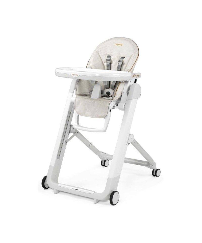 Cuenta con el sistema Confort Recline de Peg Perego, que transforma la trona en una mecedora, para utilizarla desde el primer día. Reclinando el respaldo hasta 150°, el asiento se desplaza simultáneamente hacia delante, transformando la trona en una acogedora cunita para disfrutar de unos dulces sueños con total comodidad.