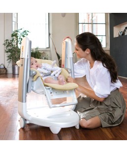 Trona multifunción 3 en 1 para su uso como tumbona, mecedora y trona.