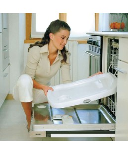 La bandeja, cuando no se utiliza, se puede enganchar en las patas de la trona para mayor comodidad.