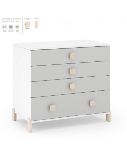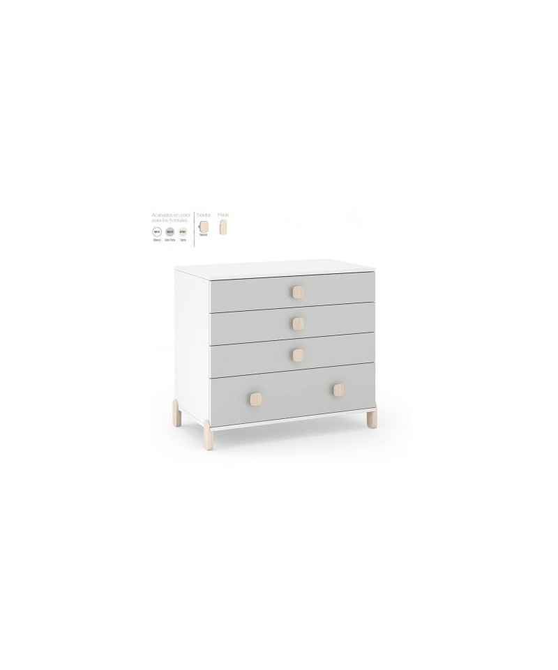 Una preciosa cómoda con tiradores y patas en madera natural (o ruedas).