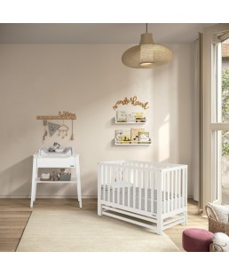 No obstante, si la prefieres fija puedes conseguirlo quitándole fácilmente el balancín que incorpora la cuna. Está disponible en dos colores blanco y cera natural, y dispone de tres alturas de somier: 27'5 cm,38'5 cm y 49'5 cm.
