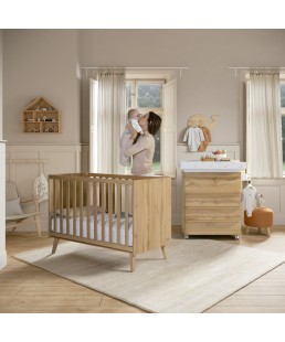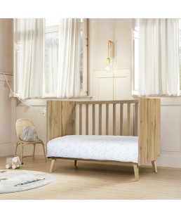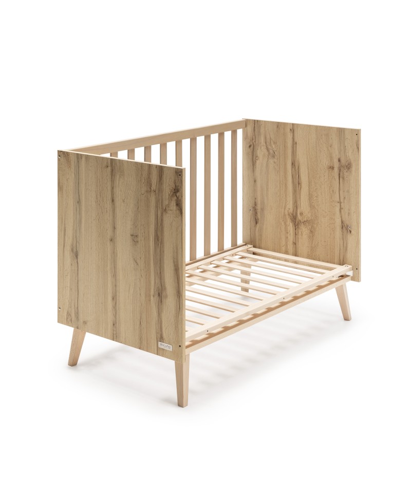 Inspirada en un estilo natural y fabricada con maderas procedentes de bosques sostenibles, también disponible en tamaño 140x70 convertible en camita, está diseñada para acompañar a tu bebé a medida que se hace mayor.