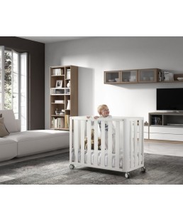 Minicuna de día, Minicuna de Colecho de noche, Cuna desde el momento en que el bebé puede sentarse o levantarse solo, y finalmente se transforma en un pequeño Sofá.