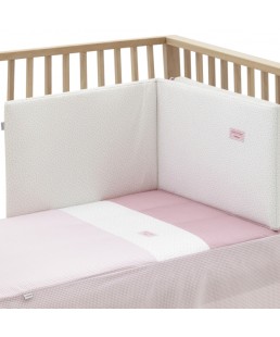 Juego de 2 piezas para vestir la cuna, compuesto por colcha invierno/verano más protector incluye un bonito cojín bordado. La colcha, es la prenda que viste la cuna y cumple el cometido de protección contra el frío como si de una manta o una funda nórdica se tratara.