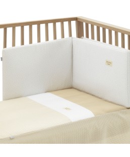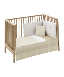Juego de 2 piezas para vestir la cuna, compuesto por colcha invierno/verano más protector incluye un bonito cojín bordado. La colcha, es la prenda que viste la cuna y cumple el cometido de protección contra el frío como si de una manta o una funda nórdica se tratara.