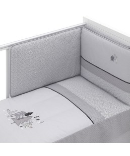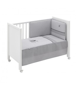 Juego de 2 piezas para vestir la cuna, compuesto por colcha más protector. La colcha, es la prenda que viste la cuna y cumple el cometido de protección contra el frío como si de una manta o una funda nórdica se tratara.