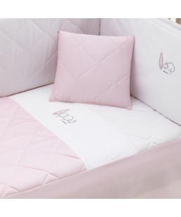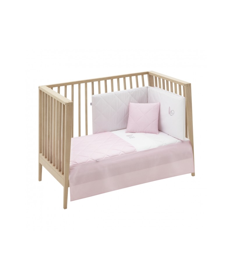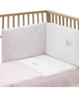 Juego de 2 piezas para vestir la cuna, compuesto por colcha más protector. La colcha, es la prenda que viste la cuna y cumple el cometido de protección contra el frío como si de una manta o una funda nórdica se tratara.