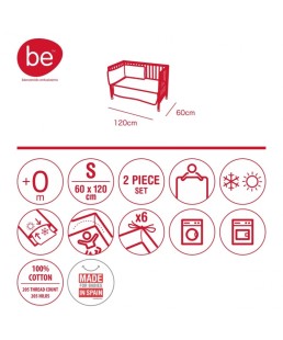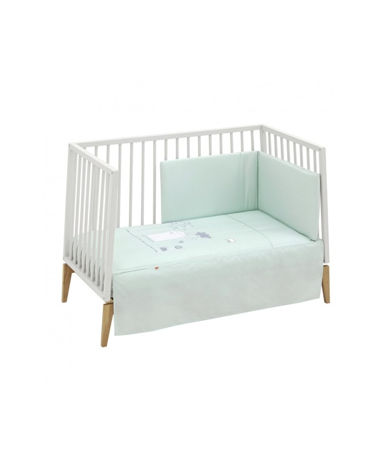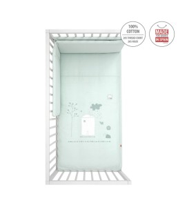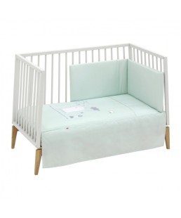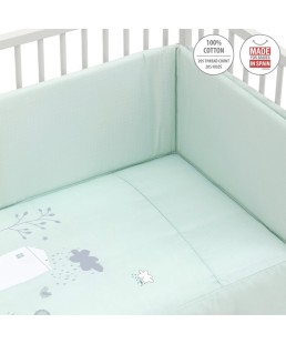 Juego de 2 piezas para vestir la cuna, compuesto por colcha más protector. La colcha, es la prenda que viste la cuna y cumple el cometido de protección contra el frío como si de una manta o una funda nórdica se tratara.