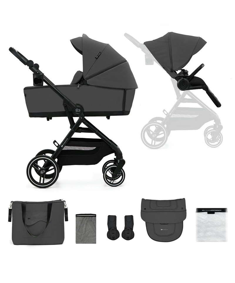 ¡Con accesorios! Todos los accesorios necesarios durante el paseo cabrán en la amplia cesta con capacidad para 5 kg. El carrito también incluye mosquitera (guardada en el reposapiés), cubrepiés, plástico impermeable, portavasos, bolsa para el manillar y adaptadores para la silla de coche.