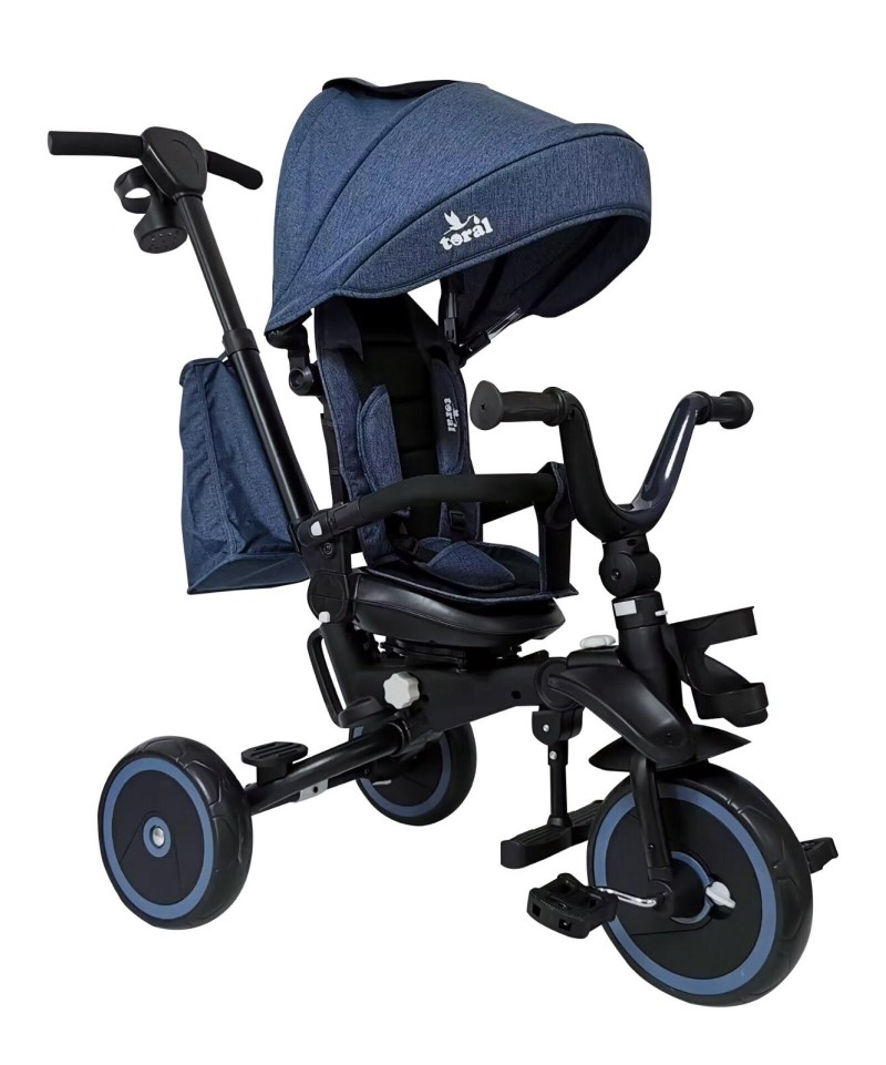 Plegable y con asiento reversible, Puede ser conducido por el niño con los pedales o bloquearlos para que lo maneje un adulto.