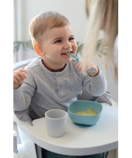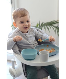 El momento de las primeras comidas es un paso precioso en el descubrimiento de nuevos sabores y autonomía para los niños pequeños. Un juego de comida de silicona, diseñado para el aprendizaje, puede facilitar enormemente esta experiencia. El juego de comida de silicona proporciona todo lo que el bebé y los padres necesitan para las primeras comidas. Incluye utensilios de mesa esenciales para las primeras comidas con sus 4 piezas: un plato y un bol con ventosa, una taza y una cuchara de silicona para la segunda etapa. La ventosa debajo del plato y el bol permite fijarlos de forma segura a la mesa, evitando así los accidentes. El diseño y la forma ergonómica de estos elementos ayudan a guiar la ingesta de alimentos con bordes alt y redondeados, lo que facilita el aprendizaje para el niño. Este juego es fácil de limpiar e irrompible, asegurando un uso duradero y sin preocupaciones. Además, puede lavarse a mano o en lavavajillas, y es apto para microondas.