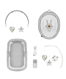 La hamaca tiene 6 movimientos de balanceo únicos: 5 modos básicos y un modo automático adicional que cambia cada 16 segundos.