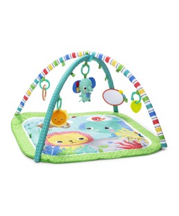 Incluye divertidos juguetes: timbre, espejo, sonajero, elefante. La alfombra es suave y acolchada para la comodidad del bebé.
