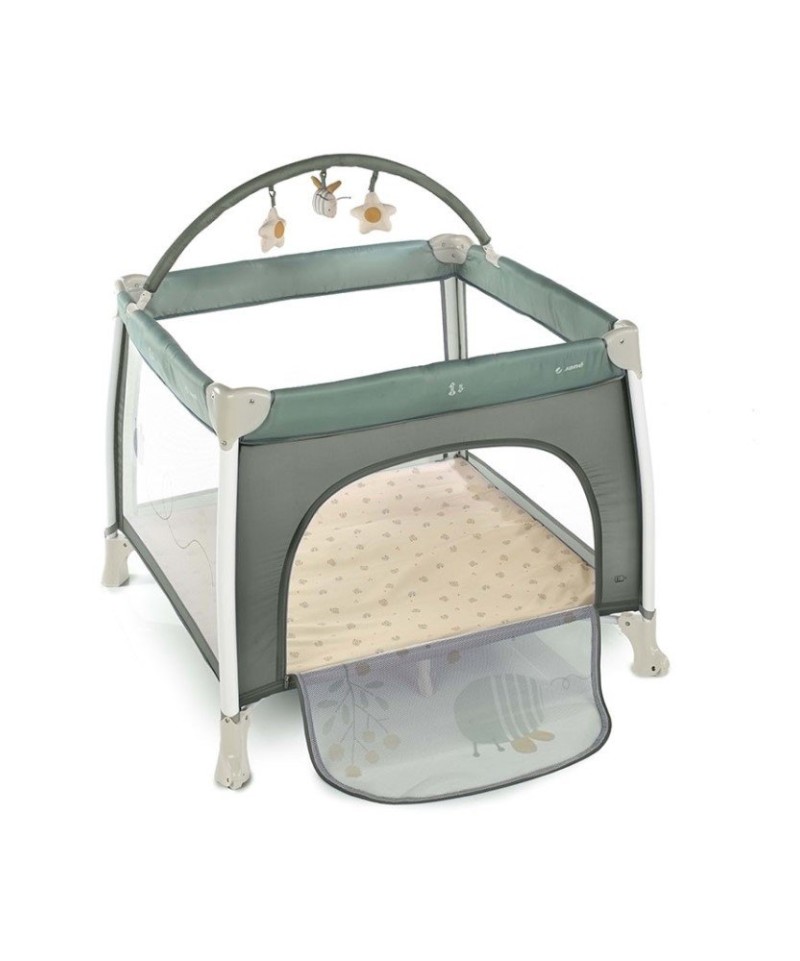 Cuidados: limpieza del parque, limpiar las partes plásticas con un paño húmedo con agua y jabón; limpieza del tapizado, lavar a mano con un paño húmedo y dejarlo secar a temperatura ambiente.
