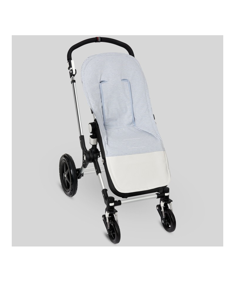 Colchoneta para sillas de paseo confeccionada en jersey de rayas. Cubre barra a juego y refuerzo de polipiel en los pies.