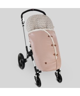 Saco universal para sillas bebé confeccionado en polipiel. Apertura frontal con adorno bordes de pelo y cierre con alamares. Cremalleras laterales para convertir el saco en colchoneta. Colchoneta interior tejido estampado de globos.