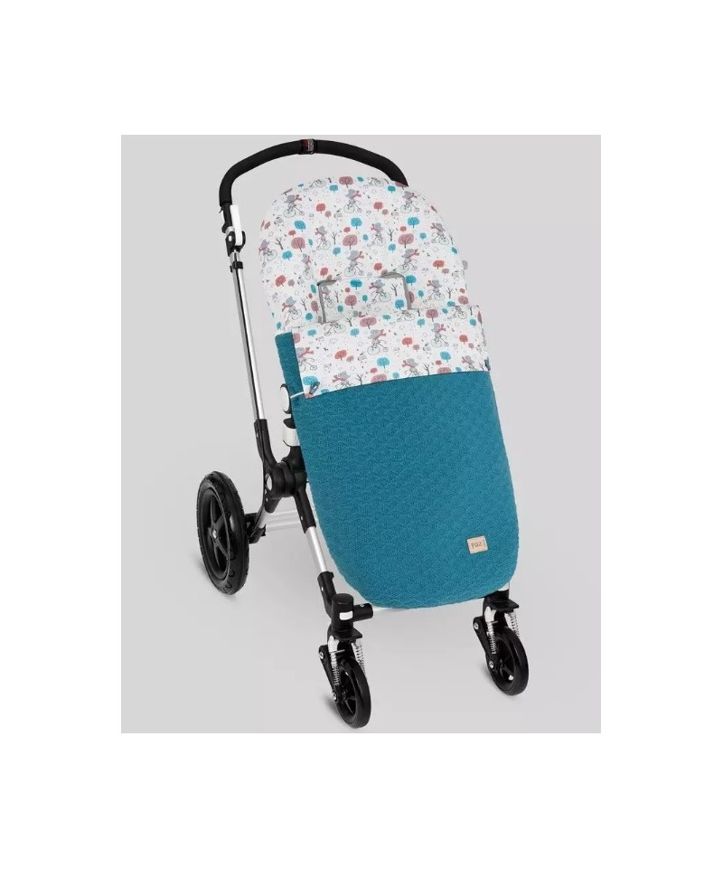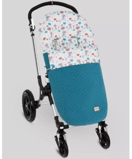 Saco universal para sillas bebé confeccionado en punto relieve con tejido estampado de ratones. Cremalleras laterales para convertir el saco en colchoneta. Relleno extraíble.
