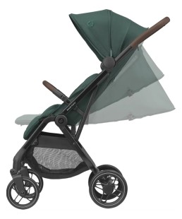 MAXI COSI Soho Essential Green: Chasis negro y empuñaduras de cuero marrón.