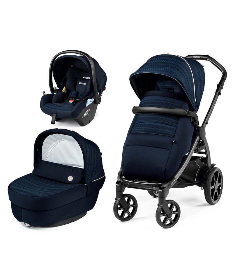 La versión  incluye el cochecito Book, ágil y reversible, el práctico capazo Culla Elite y la silla de auto grupo 0+ Primo Viaggio Lounge.